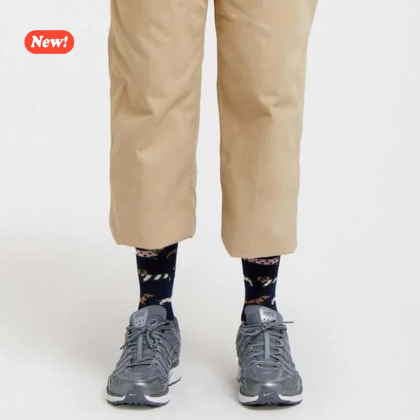 Gli originali calzini BePets Black sono uno dei bestseller di Besocks e presentano un motivo casual con bassotti che indossano abiti stampati in diverse posizioni, su uno sfondo nero, con punta, risvolto e base nei colori coordinati.