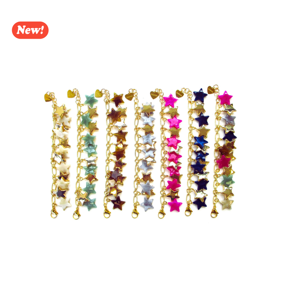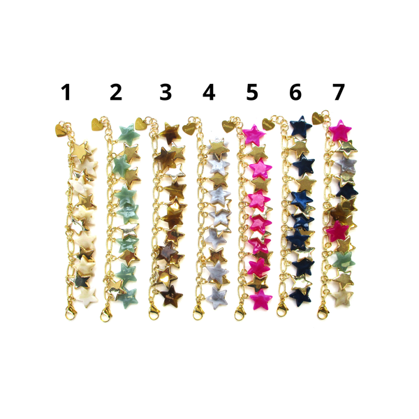 Bracciale in catena con charms di stelle multicolor Stellata, nichel free (EN1811/2023), con chiusura a moschettone.