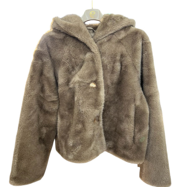 Giubbotto con cappuccio in eco-pelliccia, chiusura sul davanti con bottoni. Una eco-pelliccia bella, calda e super elegante, perfetta per look serali e modaioli.