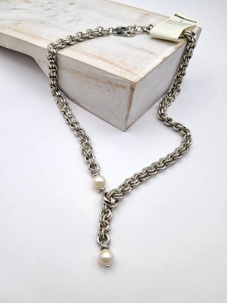 Le perle naturali pendenti aggiungono un tocco di raffinatezza e luminosità, creando un equilibrio perfetto tra modernità e classe.