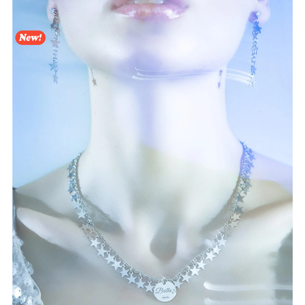 Collier di stelle in acciaio con ciondolo centrale con inciso “Brilla”.