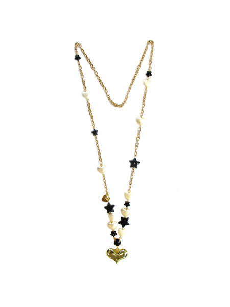 Collana con inserti incatenati e ciondolo a cuore di resina Cosmika, nichel free (EN1811/202) con chiusura a moschettone.