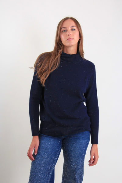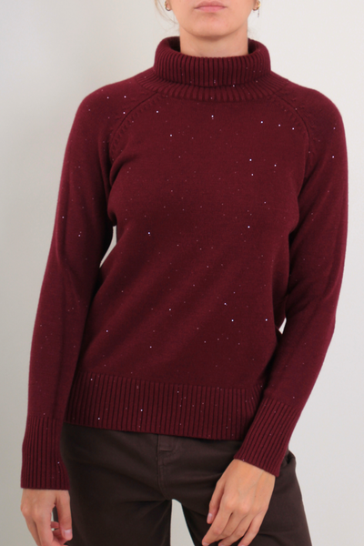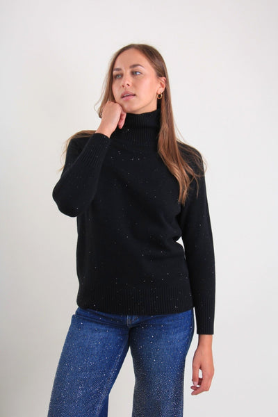 Maglia con collo alto morbido e dettagli luminosi: un capo raffinato e confortevole, ideale per i mesi più freddi.