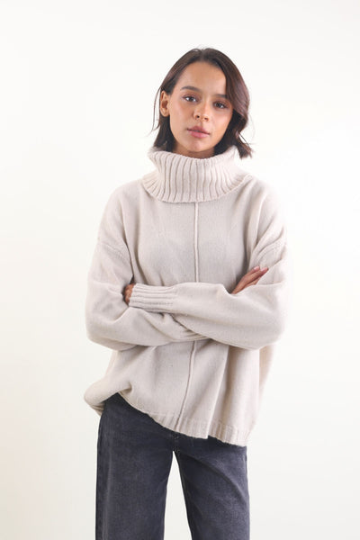 Un capo caldo e avvolgente, ideale per affrontare la stagione autunno inverno 2025/2026 con stile. Questo maglioncino in maglia presenta un ampio collo alto a coste che dona carattere al design e lo rende confortevole nelle giornate più fredde.
