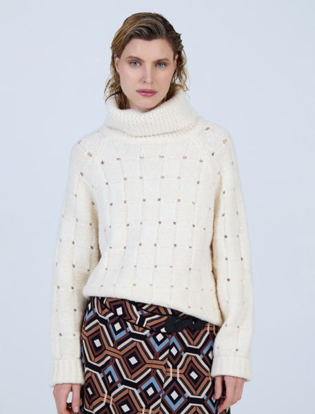 Maglione lavorato a maglia, morbido al tatto. Collo a cigno. Maniche lunghe raglan con finitura a coste.