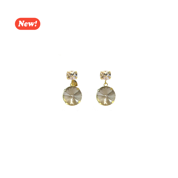 Orecchini pendenti in strass tondo Ofelia, nichel free (EN1811/2023) con chiusura a perno e farfallina.