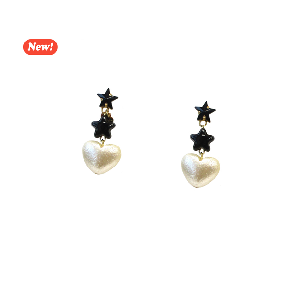 Orecchini pendenti con motivo a stella e cuore Cosmika, nichel free (EN1811/2023) con chiusura a Perno e farfallina.