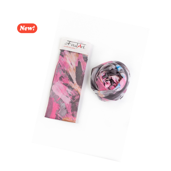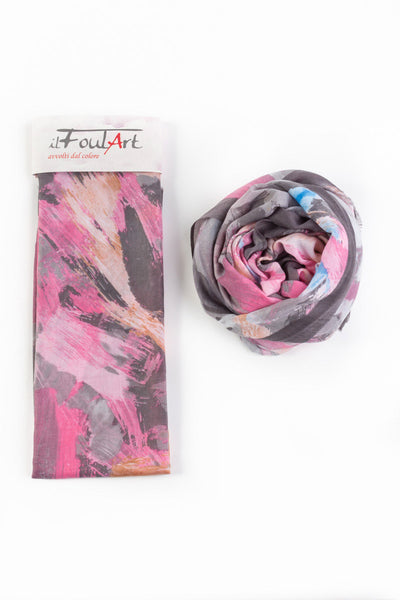 Scialle/Pareo fantasia Pennellate, un mix di colori e luce, per look moderni ed eleganti. Bella, morbida e calda.