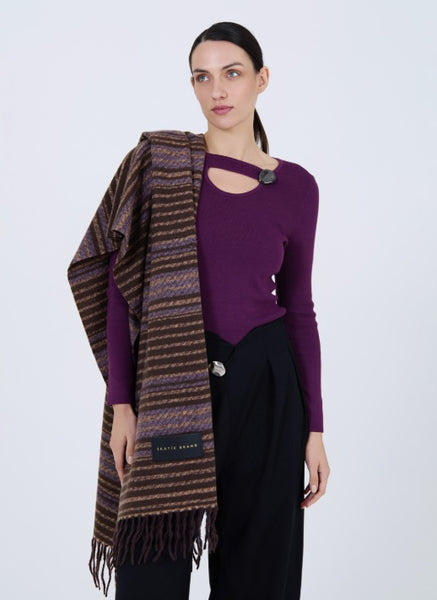 Sciarpa a righe morbida al tatto, con frange all'estremità. Bella, calda e morbida, un accessorio unico, intramontabile.