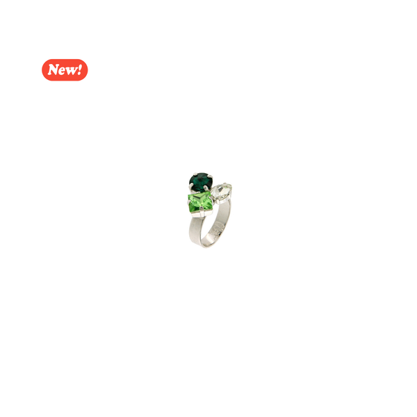 Anello regolabile realizzato in lega metallica galvanizzata in Rodio anallergico, arricchito con i migliori Cristalli selezionati per qualità e brillantezza.