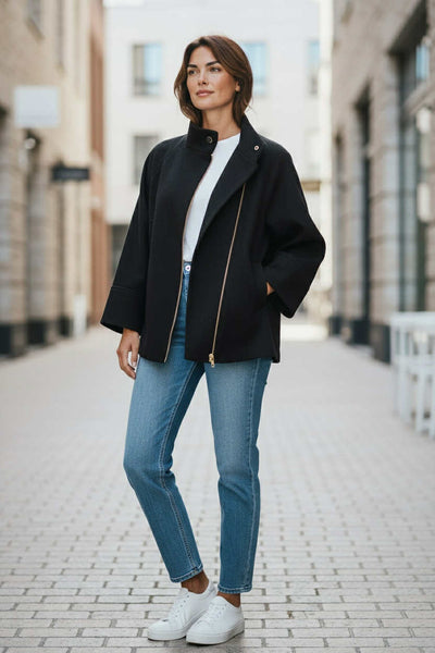 Cappotto con martingala e manica a 3/4, un pezzo di alta classe e stile, bello, elegante, unico. Perfetto con diversi look e per diverse uscite. Un capo d'abbigliamento che amerai.