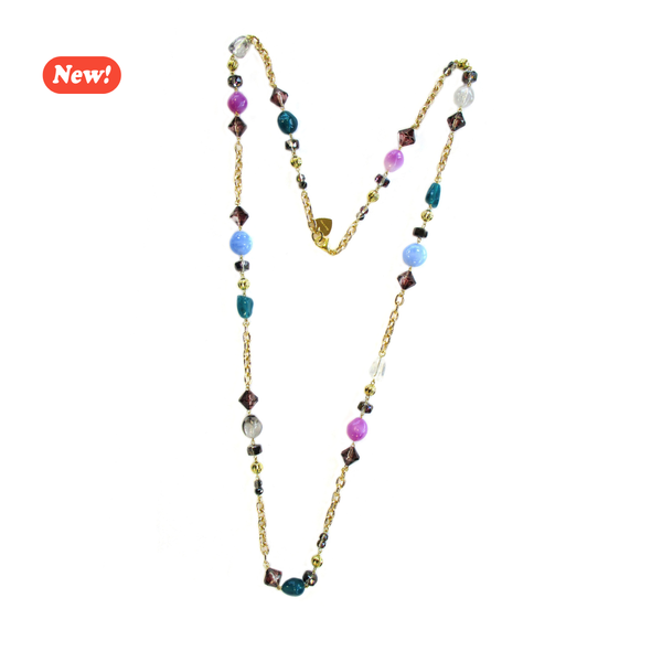 Collana con inserti incatenati in resina e cristalli Atmosfera, nichel free (EN1811/2023), chiusura con moschettone.