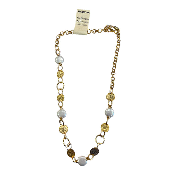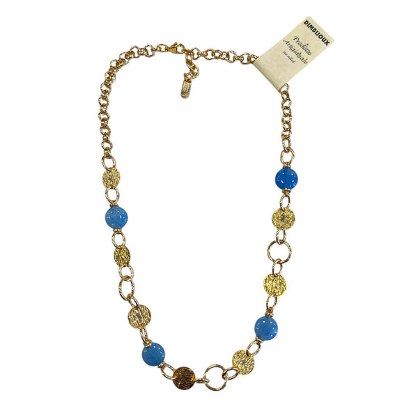 Raffinata ed elegante, questa collana artigianale unisce la bellezza autentica delle pietre dure naturali al fascino luminoso degli elementi tondi in ottone martellato.