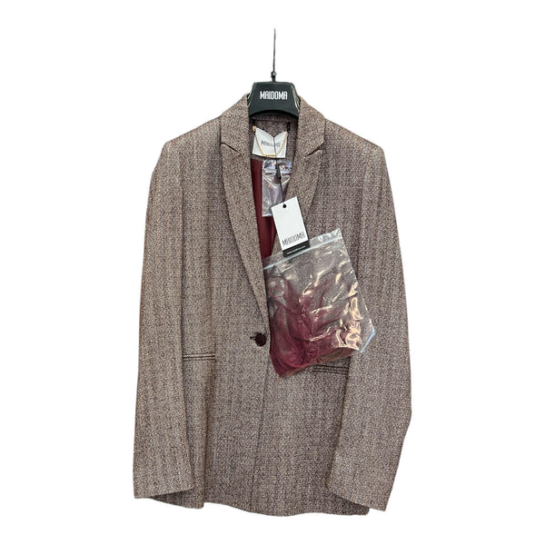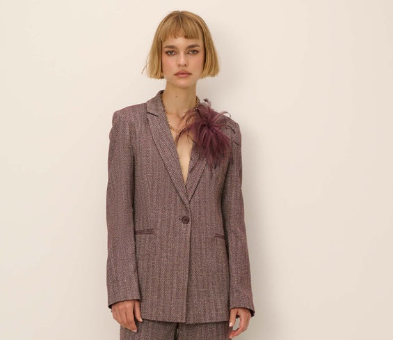 Giacca con spilla piume, chiusura ad un bottone, per un look elegante e intramontabile, reso particolare dalla piuma che da un tocco sofisticato a questa giacca.