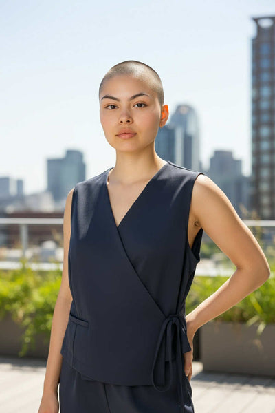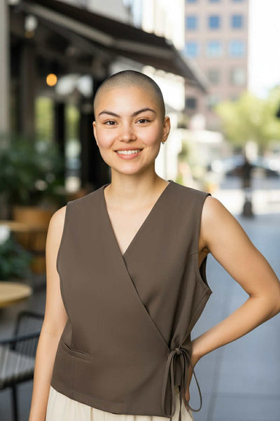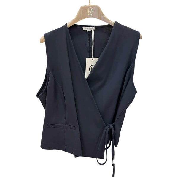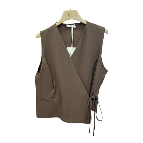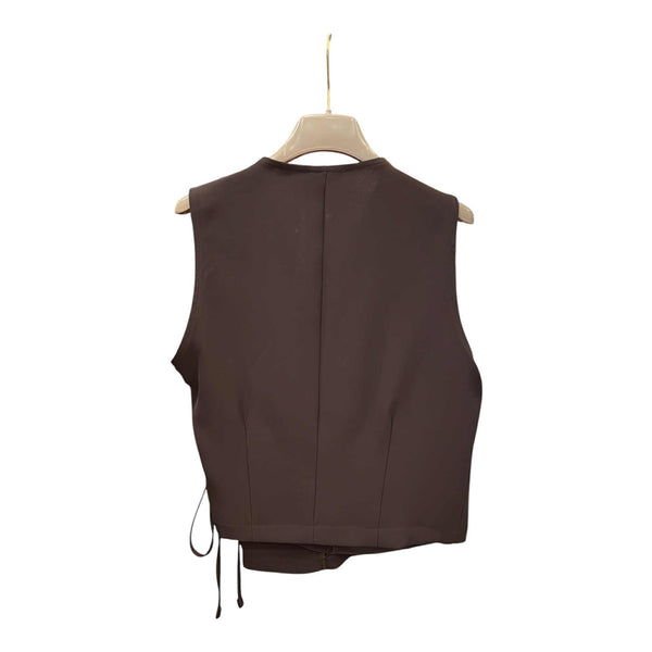 Gilet con chiusura esterna con laccetto ed interno con bottone, per un look moderno e dal fascino incredibile. Abbinabile con pantaloni della stessa tinta, presenti in negozio, per outfit ancor più super stilosi.