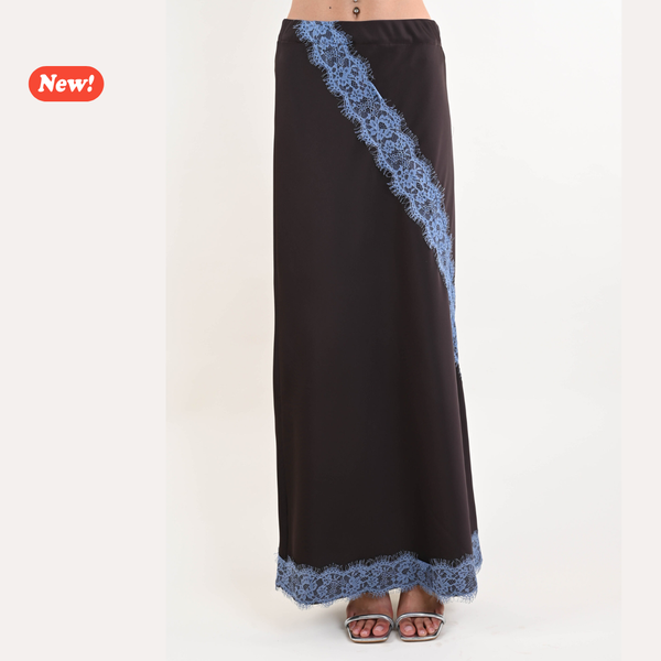 Gonna donna dal design femminile e raffinato, caratterizzata da un inserto decorativo in pizzo che valorizza la linea con un dettaglio ricercato. Il modello presenta una silhouette pulita e una vestibilità confortevole, pensata per accompagnare il movimento con eleganza.