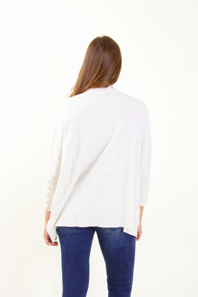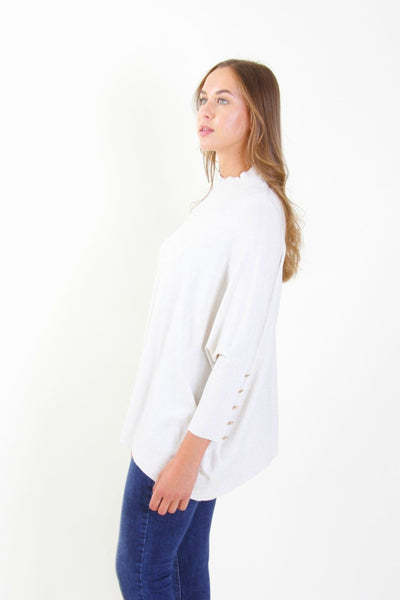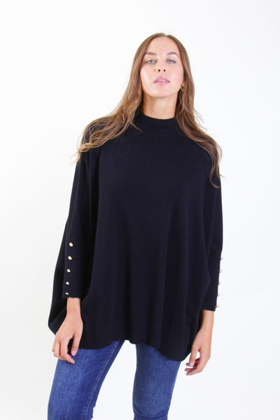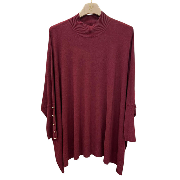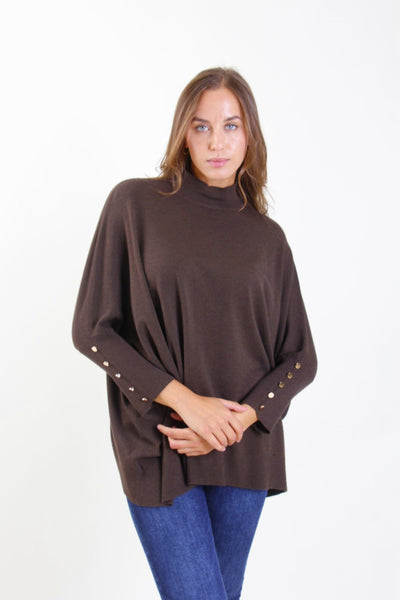 Il modello presenta collo alto lavorato a costine, maniche lunghe con spalla scesa e una linea fluida che si adatta con naturalezza a ogni silhouette. I bottoni dorati applicati sul polsino aggiungono un accento luminoso e distintivo, trasformando un capo essenziale in un elemento protagonista del look. Il tessuto in maglia morbida e confortevole rende questa maglia ideale da indossare tutto il giorno, dal lavoro al tempo libero.