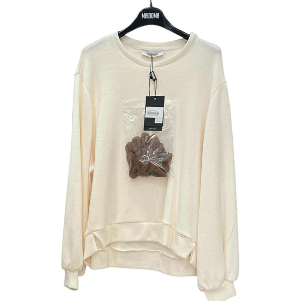 Maglia a maniche lunghe, effetto felpato, con spilla a fiore, perfetta per look comodi, caldi e super stilosi. Un capo di cui non potrete fare a meno.