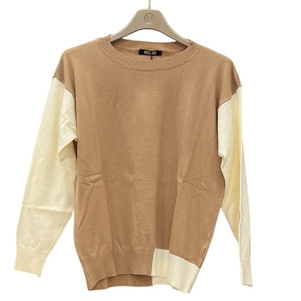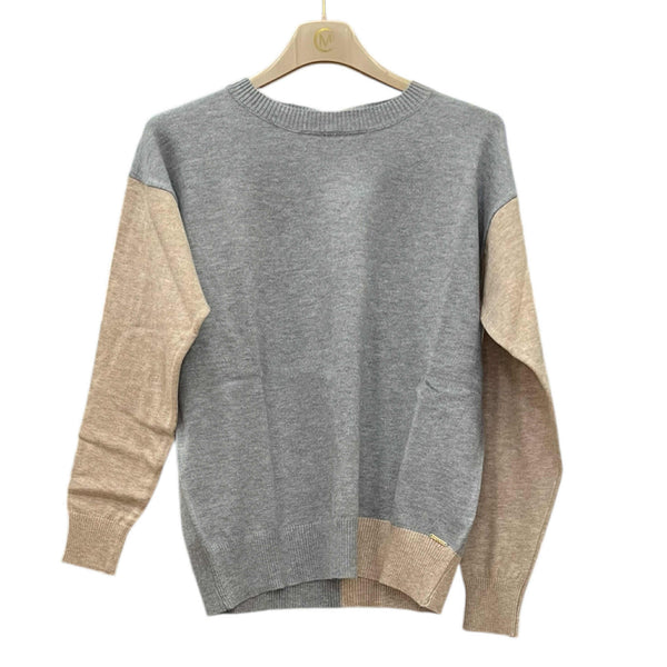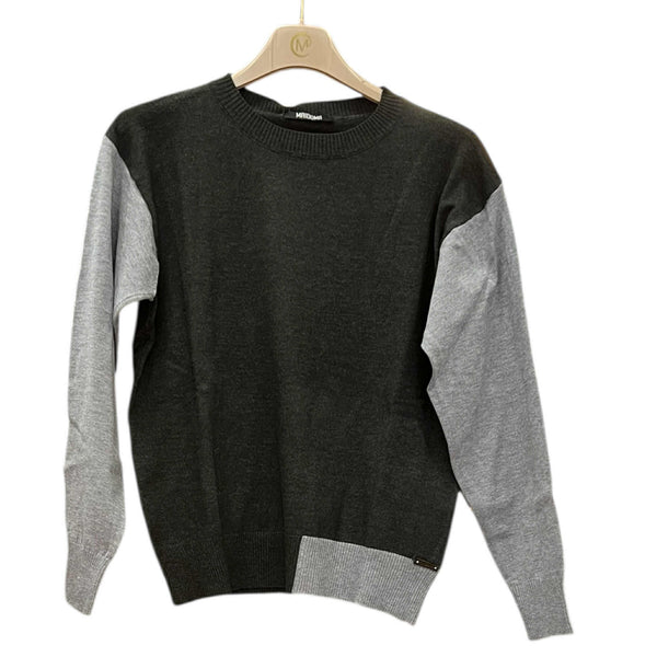 Maglioncino girocollo bicolore, bello, caldo e dallo stile unico, per un look casual super originale e stiloso.