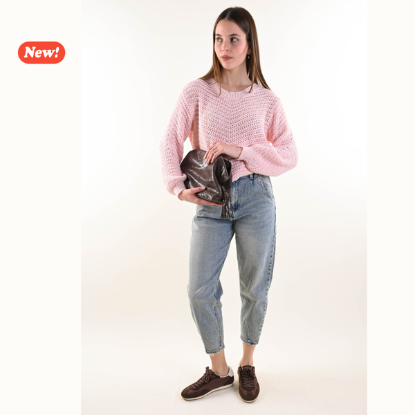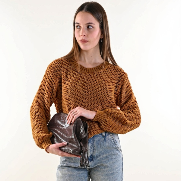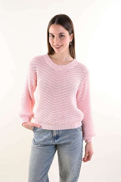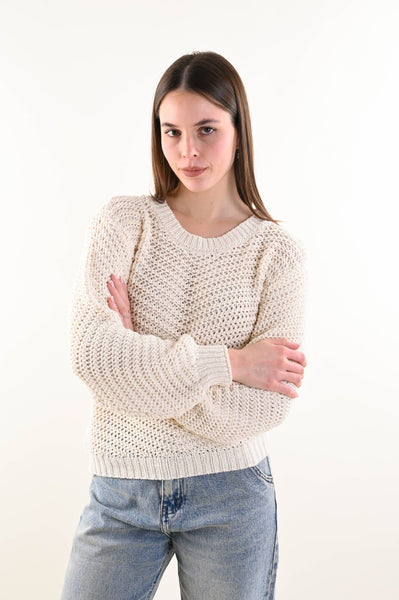 Maglia donna dal design contemporaneo caratterizzata da una lavorazione a rete che valorizza la texture del capo e ne esalta lo stile essenziale ma ricercato. Girocollo a costine. Vestibilità comoda e naturale.