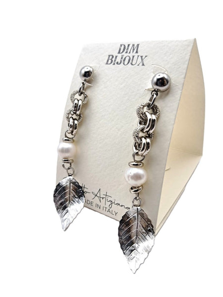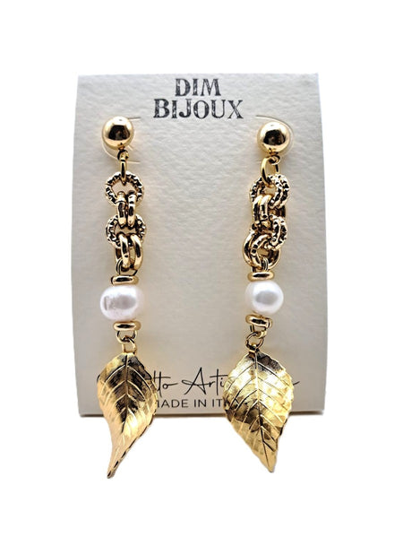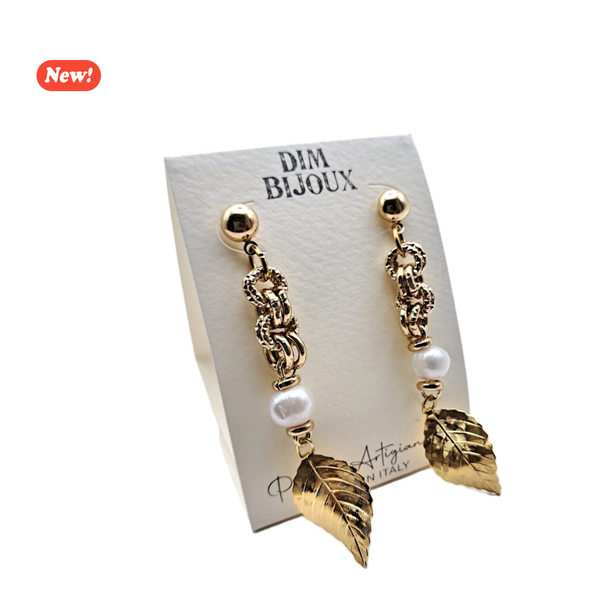 A impreziosire il design, una perla naturale centrale dona un tocco di eleganza senza tempo, esaltando la femminilità di chi li indossa. Il dettaglio finale è una foglia in ottone galvanizzato dal design tridimensionale e finemente cesellato, che conferisce luce e movimento all’insieme.