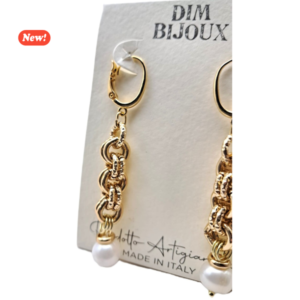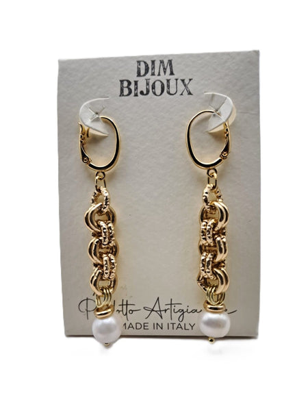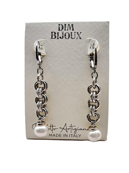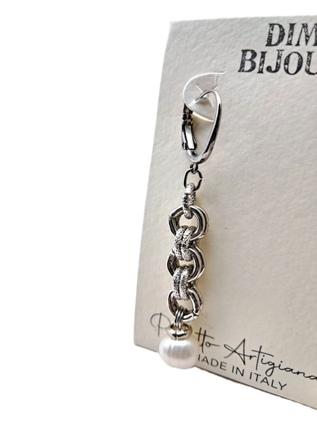 Orecchini artigianali realizzati a mano in Italia con anelli in alluminio anodizzato intrecciati, impreziositi da una perla naturale pendente. Un design elegante e contemporaneo, completamente anallergico e inalterabile nel tempo. La chiusura con monachella chiusa assicura comfort e sicurezza. Un gioiello che unisce tradizione artigianale e stile Made in Italy.