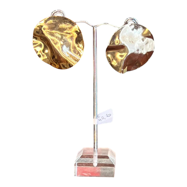 Orecchini con piastre tonde grandi a bottone in ottone martellato dorato.