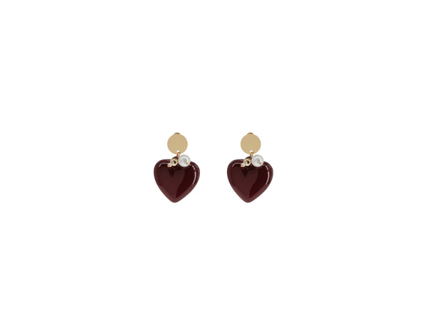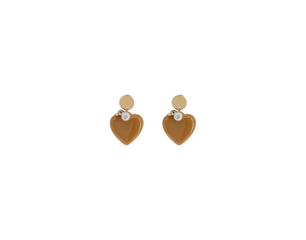 Orecchini in resina lucida, ottone e perline. Cuore 30 mm con perla decorativa. Romantici e luminosi.