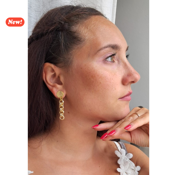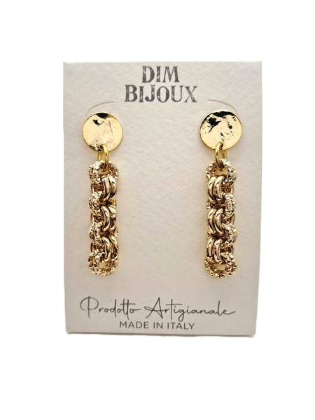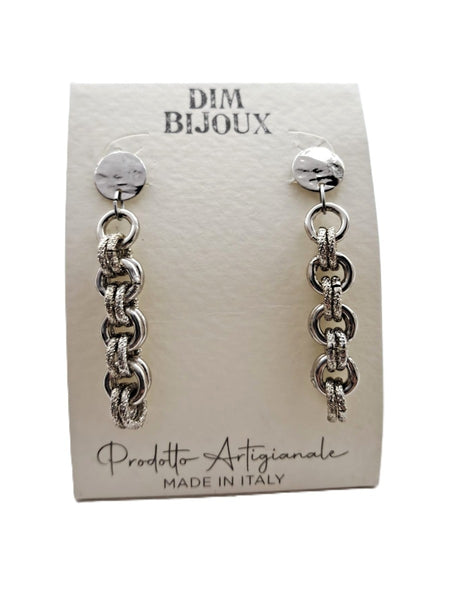 Questi eleganti orecchini pendenti artigianali sono realizzati in alluminio con una particolare lavorazione a catena, disponibile in diversi colori e finiture. Dal design moderno e raffinato, sono pensati per valorizzare ogni look con un tocco di luce e originalità.