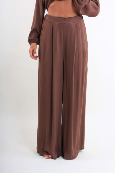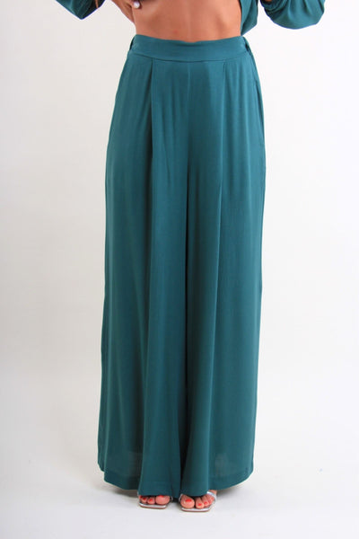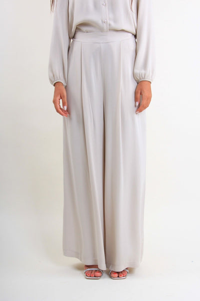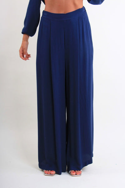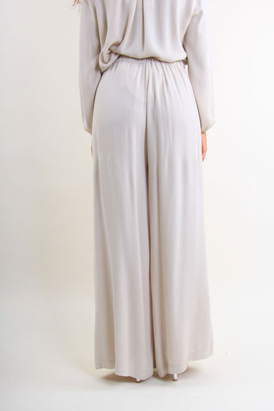 Pantaloni palazzo dalla linea ampia e scivolata, realizzato in viscosa fluida che garantisce comfort e libertà di movimento. Il taglio a vita alta con fascia elasticizzata sul retro assicura una vestibilità comoda e versatile.