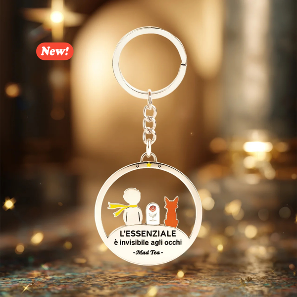 Questo portachiavi, ispirato al Piccolo Principe, custodisce un messaggio profondo: i legami più veri, l’amore e l’amicizia non hanno bisogno di essere visti per essere sentiti. Il Piccolo Principe, la volpe e la rosa ci ricordano che è il tempo dedicato, insieme alla cura e all’attenzione, a rendere ogni legame unico e prezioso.