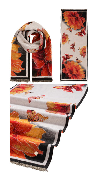 Sciarpa fantasia floreale, calda, morbida, ampia, super confortevole, perfetta per look sofisticati, ricercati e stilosi.