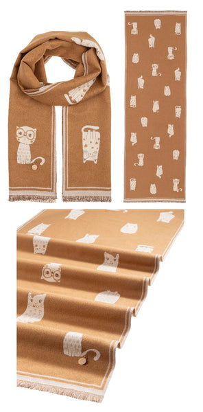 Sciarpa con fantasia gatti, piccole frange all'estremità. Bella, colorata e dallo stile inconfondibile.